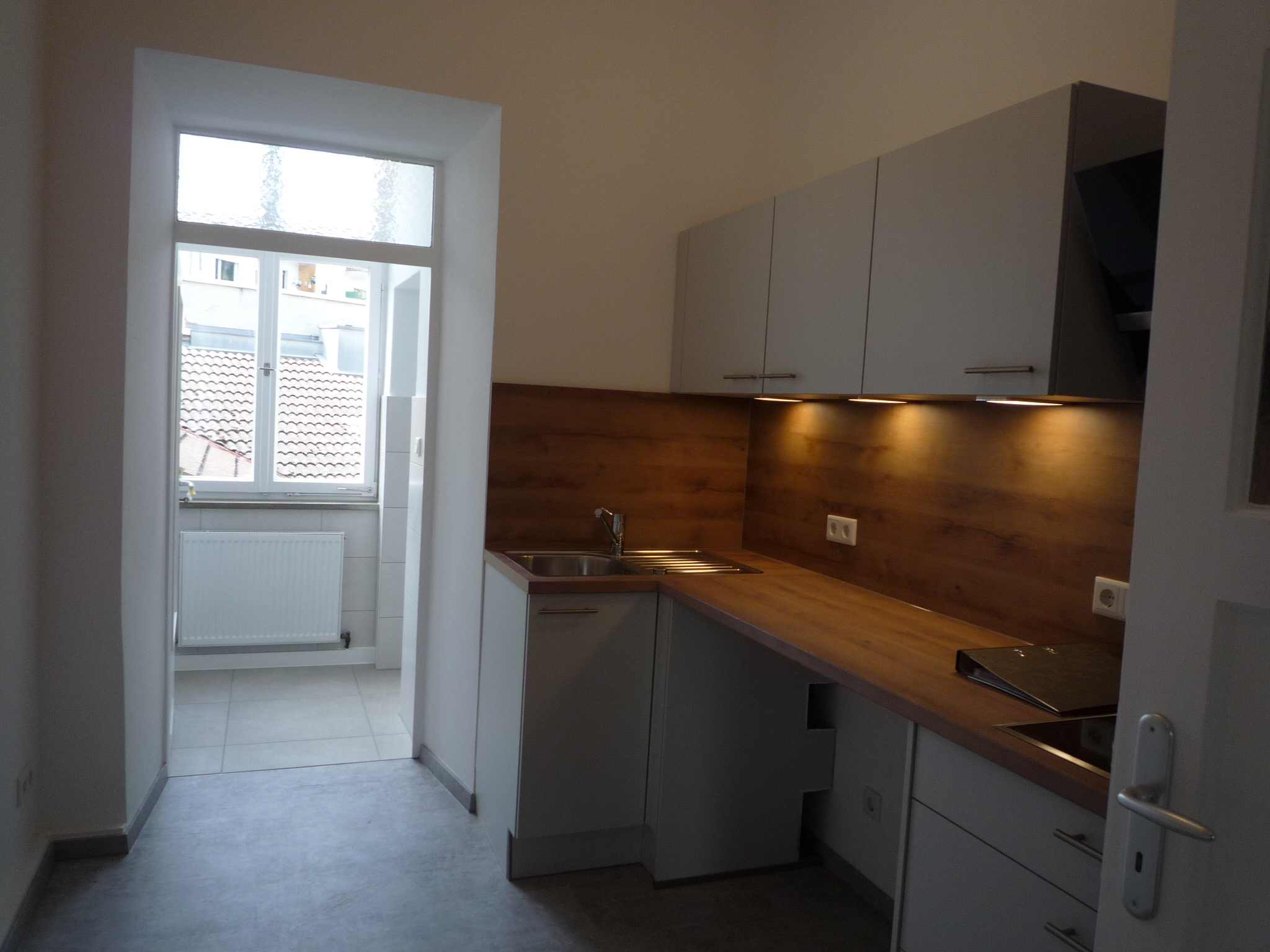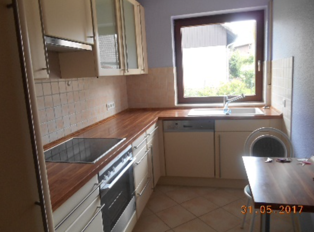 Küche und Zwischenraum: Links: Alte Version und rechts die sanierte Version